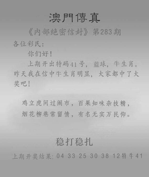 283期: 澳门六合彩 『澳门另传真』已更新