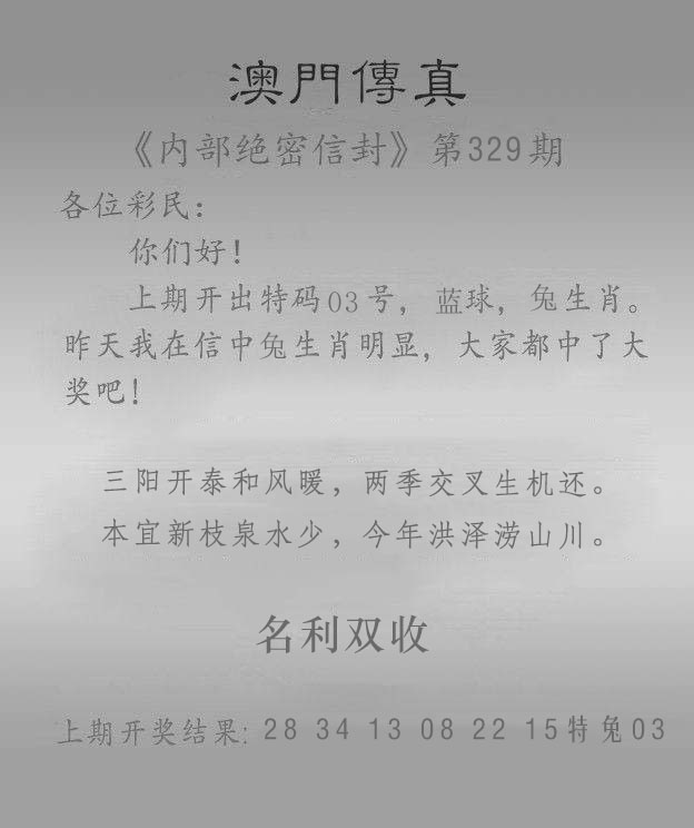 329期:澳门六合彩『澳门另传真』